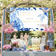 Welcome guests with enchanting elegance using this “Time for Tea with the Bride” banner! Featuring a curated collection of timeless Blue Willow motifs—including a graceful pagoda, romantic Asian lovebirds, and flowing willow branches—this banner is the perfect decorative accent for your Chinoiserie-themed bridal shower.