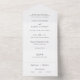 Elegant all in one wedding invitation featuring a simple design with your event details in serif and script fonts. Attached RSVP card includes meal choices for your guests.