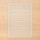 Design features the traditional format for a Catholic wedding invitation displayed in an elegant bright gray/silver colored font against your choice of a frosted or clear acrylic background. Top displays the monogram of bride and groom on either side of a cross. A small heading is featured above as an arch. Design is framed by an elegant silver-colored border. All text is customizable. For this particular design, our vellum papers help to create an elegant impression while aiding in the viewing of the text. View the entire wedding suite including our coordinating vellum papers in the Timeless Catholic Monogrammed Wedding Collection.