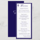 Design front features a white background to the image of a cross in top left corner. Heading is displayed in an elegant font in top center. Following the traditional format for a wedding menu, all text is customizable and displayed in a navy-blue font. Entire design is framed by a navy-blue and white border.