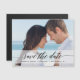 Élégant enregistrer le faire-part photo date avec une bannière blanche transparente avec élégant script de calligraphie moderne disant "Save the Date". Magnet.