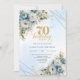 Timeless dusty blue florals gold frame 70 birthday einladung