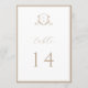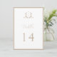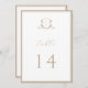 Elegant Botanical Crest wedding monogram, table number card. Vintage inspired crest adorned with botanical branches. Features, elegant beige typography design style mix of script and bold type. Please note that table number cards must be ordered individually.