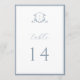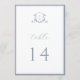 Elegant Botanical Crest wedding monogram, table number card. Vintage inspired crest adorned with botanical branches. Features, elegant dusty blue typography design style mix of script and bold type. Please note that table number cards must be ordered individually.