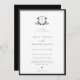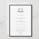 Elegant greenery adorned crest, wedding invitation. Modern and timeless monogram wedding crest in black with trendy minimalist typography template and coordinating black frame border.