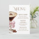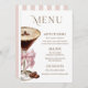 Un menu d'anniversaire pour une dame spéciale au design sophistiqué et ludique avec un élégant verre expresso martini garni d'une couche mousseuse et de fèves de café est attaché avec un arc en chiffon rose. Ces détails ajoutent à l'atmosphère de plaisir et de fête ! Personnalisez ce menu d'anniversaire très spécial avec vos détails. Si vous devez ajouter ou supprimer des lignes de texte, ouvrez le menu d'édition complet en sélectionnant "modifier à l'aide de l'outil de conception" situé en bas du modèle de conception.
