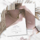 Ein abstrakter Hintergrund, der an eine flüssige Tinte in den Tönen von Tieftaupe bis Rosa und Weiß erinnert, bildet den Hintergrund für elegante handgeschriebene Skripttexte und moderne Designs in den Teilen dieser wunderschönen Hochzeitssuite. Die hier gezeigte Hochzeitskarte enthält die obige und eine Vorlage, um Ihre eigenen relevanten Veranstaltungsinformationen hinzuzufügen. Durchsuchen Sie ID762 um alle Koordinaten in diesem Set zu sehen.