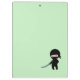 Niedlicher, aber wütender Cartoon Ninja in schwarz gekleidet hält ein traditionelles japanisches Katana Schwert.
