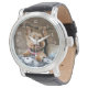 Uhr, Vintage Männeruhr mit schwarzem Lederarmband