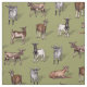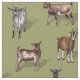 Dieser Stoff hat eine Herde von winzigen Ziegen in allen Farben auf einem gedämpften grünen Hintergrund.