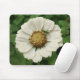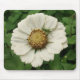 Foto eines winzigen Grashüpfers oder Grashüpfers-artigen Bugs, der auf einer weißen Zinnie sitzt.