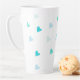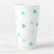 Schattierungen von kleinen grünen Herzen, die über weiße Tasse verstreut sind - große Latte-Kaffee-