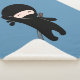 Happy Cartoon Ninja in schwarz gekleidet mit dem Arm erhöht in winkeln. Traditionelles japanisches Schwert Katana kann man an seiner Schulter sehen.