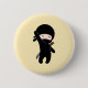 Happy Cartoon Ninja in schwarz gekleidet mit dem Arm erhöht in winkeln. Traditionelles japanisches Schwert Katana kann man an seiner Schulter sehen.