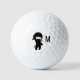 Niedlicher glücklicher Cartoon Ninja in schwarz gekleidet hält ein traditionelles japanisches Katana Schwert. Anpassbare Initial.