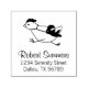 Der winzige Cartoon Ninja hält sich schließlich für eine wilde Fahrt fest, nachdem er erfolglos versucht hat, ein großes Huhn zu zähmen. Personalisieren Sie mit Ihrem eigenen Namen und Ihrer eigenen Adresse.