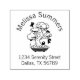 Einfache Schwarz-Weiß-Illustration eines japanischen Topfbonsai-Baumes in einem flachen Tablett. Eine Gruppe winziger Ninjas machte diesen Baum zu ihrer Basis. Mehrere Ninjas verstecken sich hinter dem Blätterdach. Eine ist von einem Seil an einen Ast gebunden, eine andere bewegt sich über dem Baum, der an einen Drachen befestigt ist. Passen Sie Ihren eigenen Namen und Ihre eigene Adresse an.