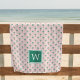 Preppy chic mit Monogramm Strandtuch in hellrot-grün und pink mit einem Allover-Muster von Palmen, mit Ihrem Single ersten Monogramm zentriert am unteren Rand in lebendigen smaragdgrünen.