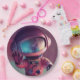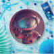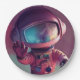 Kleine niedliche Alien mit rotem Astronauten Anzug und winkt dir Grüße