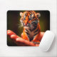 Dieses Mousepad hat einen winzigen Tiger, der darauf abgebildet ist.