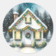 Weihnachtsticker. Niedliche kleine weiße festliche winzige Zuhause im Winterwald.
