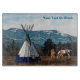 Eine Szene aus der Pazifikregion Nordwesten der Vereinigten Staaten mit einem Bild eines Indianers und seines Pferdes in der Nähe eines Tipis. Schnee hat sich auf den höheren Hängen der Berge im Hintergrund niedergelassen. Fügen Sie Ihren eigenen Text hinzu.