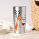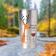 A funny and cheerful Christmas holiday design showcases a reindeer wrapped in festive lights, holding a glass of red wine, surrounded by colorful stars. The handwritten text says, "Tipsy and Bright." This delightful design is available on a variety of products, making it a perfect gift for wine lovers.