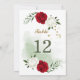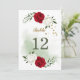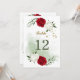 schöne individuell anpassbare Tischnummer Karte romantische rot-weiße Blume mit einigen grünen Blätter und Gold Glitzer Tischnummer Karte