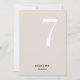 Dieses elegante Tischsiebenbeige-Template zeichnet sich durch einen modernen eleganten Schriftart aus. Die Hochzeitstisch-Sitzkarte ist eine großartige Ergänzung zur Dekoration der Hochzeitsfeier. Bearbeiten Sie diese Tischnummer mit Ihren Namen, dem Hochzeitstermin und der Tischnummer.