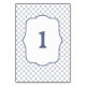 Füllen Sie Ihr Angelfacheinladungspapier mit dem entsprechenden Tag der Beschilderung aus. Platzieren Sie diese Aufhängeschilder auf den Tischen des Empfangs, damit die Gäste ihren Platz finden können. Das Design zeigt das passende Fischnetzmuster in Stahlblau.