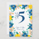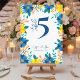 Tischnummer der Hochzeitsfeier in Gelb und Blau