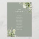 Diese eleganten grünen botanischen Blätter, die Hochzeitsfeiern anbieten, können mit dem Sitzplan-Set Ihrer Gäste in schicker Typografie personalisiert werden. Die Karten werden auf der Vorder- und Rückseite gedruckt (doppelseitig). Entwickelt von Thisisnotme©