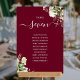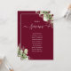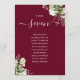 Diese eleganten bordeauxroten botanischen Blätter mit Hochzeitsfeiern können mit dem Sitzplan Set Ihrer Gäste in schicken Typografie personalisiert werden. Die Karten werden auf der Vorder- und Rückseite gedruckt (doppelseitig). Entwickelt von Thisisnotme©