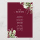 Diese eleganten bordeauxroten botanischen Blätter mit Hochzeitsfeiern können mit dem Sitzplan Set Ihrer Gäste in schicken Typografie personalisiert werden. Die Karten werden auf der Vorder- und Rückseite gedruckt (doppelseitig). Entwickelt von Thisisnotme©