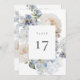 Eleganter Aquarell dustig blauer Garten Blumenrahmen, Tischnummer Karte. Bitte beachten Sie, dass die Tischnummern nummeriert und einzeln in den Warenkorb aufgenommen werden müssen.