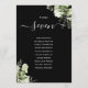 Diese eleganten botanischen Blätter in Schwarz/Weiß, die Hochzeitsfeiern anbieten, können mit dem Sitzplan-Set Ihrer Gäste in eleganter Typografie personalisiert werden. Die Karten werden auf der Vorder- und Rückseite gedruckt (doppelseitig). Entwickelt von Thisisnotme©