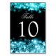 Elegantes Hochzeitsdesign "Tischnummer" mit glitzerndem, türkisfarbenem und individuellem Tischnummer-Text.