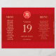 zweisprachige tischnummertabellenmenülanglebigkeitszeichenroter hintergrundtischnummerchinesisches zweisprachiges menülanglebigkeitsgeburtszeit tischnummerlanglebigkeitsmenütischnummer mit menü
