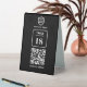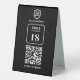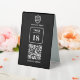 Eine einfache, benutzerdefinierte Black QR-Code-Resturbierung oder Café-Tischnummer doppelseitige Tabelle Top-Geschäftszeichen Vorlage in einem modernen minimalistischen Stil