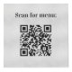 Für Restaurant, Café, Bar Tische, Personalisieren und fügen Sie Ihr Firmenlogo, Tischnummern und QR-Code für Ihre Speisekarte. Ein Imitat silber aussehender Hintergrund, schwarzer Text.