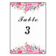 Tischnummer Wasserfarben Rosa Blumenmuster