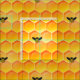 Un essaim d'abeilles au-dessus d'un motif en grille hexagone en nid de miel sans soudure avec des ombres et des reflets en trois dimensions. Trouvez une invitation correspondante, un autocollant, un enveloppement autour du étiquette et des produits connexes dans la collection. ©dopattern