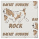 Un joli dessin animé d'une basset hound. Le chien brun et blanc a le texte, BASSET HOUNDS ROCK. Un design pour amoureux de les chiens.