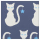 Caricature en silhouette d'un chat blanc aux yeux bleu clair contre la marine (la couleur arrière - plan peut être changée). Une étoile bleue est suspendue à la queue du chat.