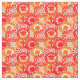 Ce tissu a un design de cercles décorés de lignes et de cercles en points répétitifs en rouge et orange.