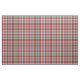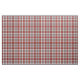 Tissu avec le tartan Clan MacAlister Dress, un motif traditionnel écossais en plaid, rouge vif, vert de forêt et blanc crémeux aux accents bleu ciel et jaune. Motif se répète tous les 10 cm. Commande spéciale à grande échelle via https://plaidwerx.com/contact.htm
