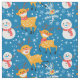 Un dessin animé amusant Reindeer et Snowman kids Christmas Fabric. Un design amusant avec des bonhommes de neige portant des foulards rouges et des rennes dansants avec un arrière - plan bleu neigeux. Un design idéal pour vos projets de courtepointe et d'artisanat ou de décoration à la maison.