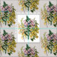 Illustration botanique démodée des digitales en jaune, rose et orange