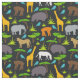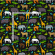 Employez ce tissu d'impression d'animaux de safari pour n'importe quel projet à la maison de décor pour la chambre à coucher d'un enfant. Le tissu comporte partout une copie avec les gorilles, les hippopotames, les girafes, les zèbres et les lionnes silhouettés dans le gris, bronzage, jaune et brun. Les arbres de jungle, l'herbe sauvage et les oiseaux bleus ajoutent l'intérêt visuel. L'arrière - plan vient dans le noir.