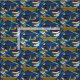 iconographie éducative; un autobus scolaire, un stylo, un crayon, des crayons, des blocs d'alphabet et des manuels scolaires sur un arrière - plan bleu marine.